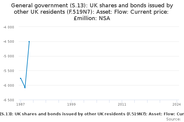Download this time seriesGeneral government (S.13): UK shares and bonds issued by other UK residents (F.519N7): Asset: Flow: Current price: £million: NSA