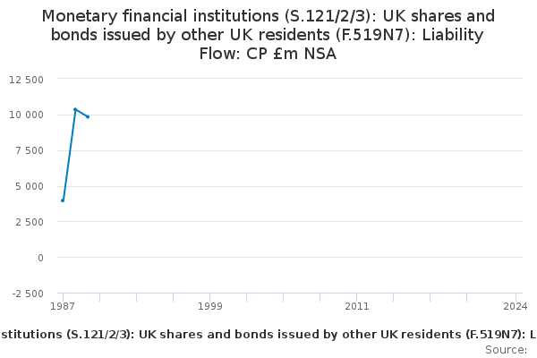 Download this time seriesMonetary financial institutions (S.121/2/3): UK shares and bonds issued by other UK residents (F.519N7): Liability Flow: CP £m NSA