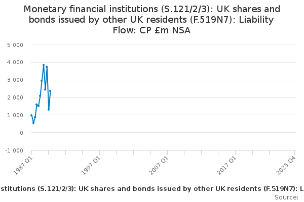 Download this time seriesMonetary financial institutions (S.121/2/3): UK shares and bonds issued by other UK residents (F.519N7): Liability Flow: CP £m NSA