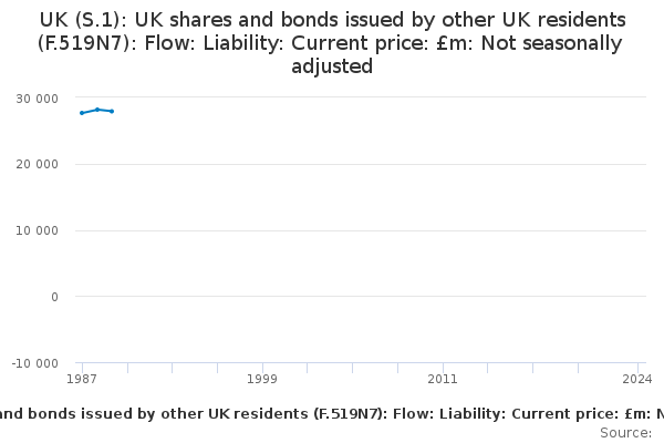 Download this time seriesUK (S.1): UK shares and bonds issued by other UK residents (F.519N7): Flow: Liability: Current price: £m: Not seasonally adjusted