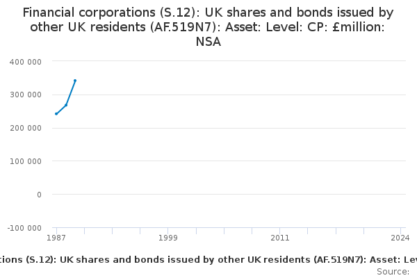 Download this time seriesFinancial corporations (S.12): UK shares and bonds issued by other UK residents (AF.519N7): Asset: Level: CP: £million: NSA