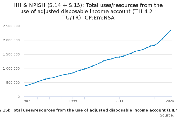 Download this time seriesHH & NPISH (S.14 + S.15): Total uses/resources from the use of adjusted disposable income account (T.II.4.2 : TU/TR): CP:£m:NSA