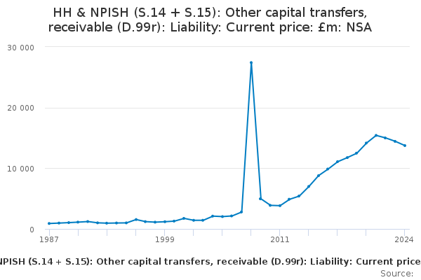 Download this time seriesHH & NPISH (S.14 + S.15): Other capital transfers, receivable (D.99r): Liability: Current price: £m: NSA