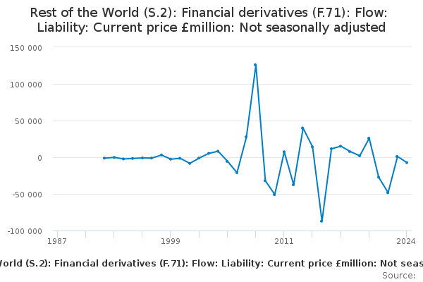 Download this time seriesRest of the World (S.2): Financial derivatives (F.71): Flow: Liability: Current price £million: Not seasonally adjusted