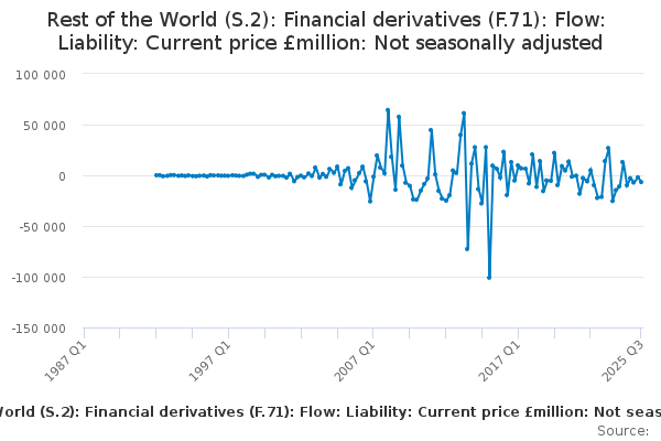 Download this time seriesRest of the World (S.2): Financial derivatives (F.71): Flow: Liability: Current price £million: Not seasonally adjusted