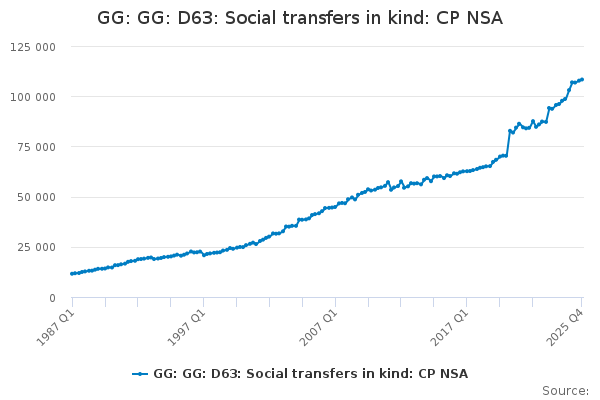 Download this time seriesGG: GG: D63: Social transfers in kind: CP NSA