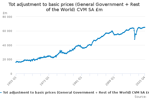 Download this time seriesTot adjustment to basic prices (General Government + Rest of the World) CVM SA £m