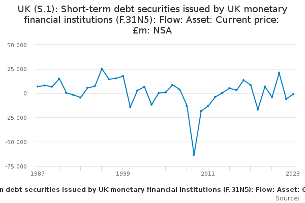 Download this time seriesUK (S.1): Short-term debt securities issued by UK monetary financial institutions (F.31N5): Flow: Asset: Current price: £m: NSA