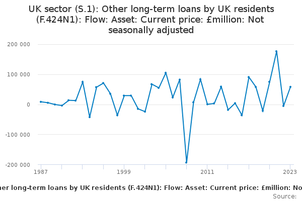 Download this time seriesUK sector (S.1): Other long-term loans by UK residents (F.424N1): Flow: Asset: Current price: £million: Not seasonally adjusted