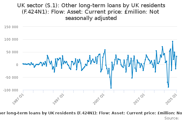 Download this time seriesUK sector (S.1): Other long-term loans by UK residents (F.424N1): Flow: Asset: Current price: £million: Not seasonally adjusted