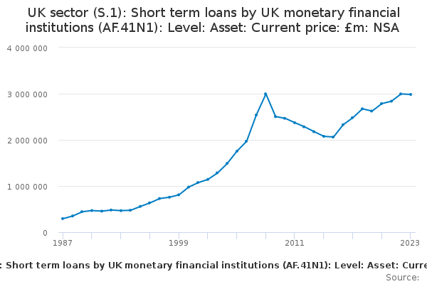 Download this time seriesUK sector (S.1): Short term loans by UK monetary financial institutions (AF.41N1): Level: Asset: Current price: £m: NSA