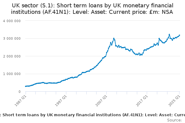 Download this time seriesUK sector (S.1): Short term loans by UK monetary financial institutions (AF.41N1): Level: Asset: Current price: £m: NSA