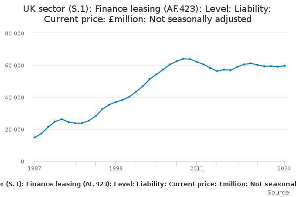 Download this time seriesUK sector (S.1): Finance leasing (AF.423): Level: Liability: Current price: £million: Not seasonally adjusted