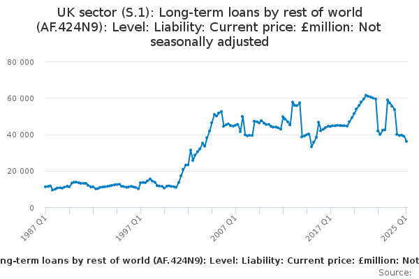 Download this time seriesUK sector (S.1): Long-term loans by rest of world (AF.424N9): Level: Liability: Current price: £million: Not seasonally adjusted