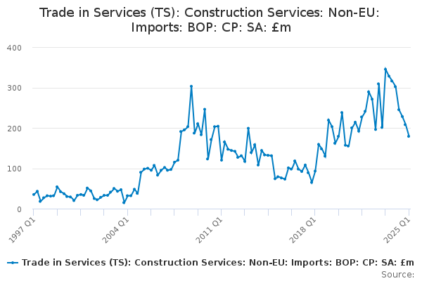 Download this time seriesTrade in Services (TS): Construction Services: Non-EU: Imports: BOP: CP: SA: £m