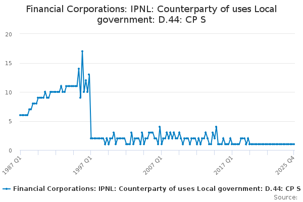 Download this time seriesFinancial Corporations: IPNL: Counterparty of uses Local government: D.44: CP S