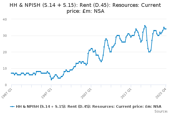Download this time seriesHH & NPISH (S.14 + S.15): Rent (D.45): Resources: Current price: £m: NSA