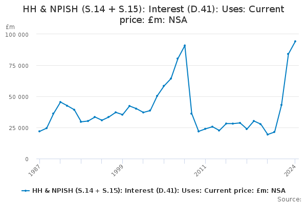 Download this time seriesHH & NPISH (S.14 + S.15): Interest (D.41): Uses: Current price: £m: NSA