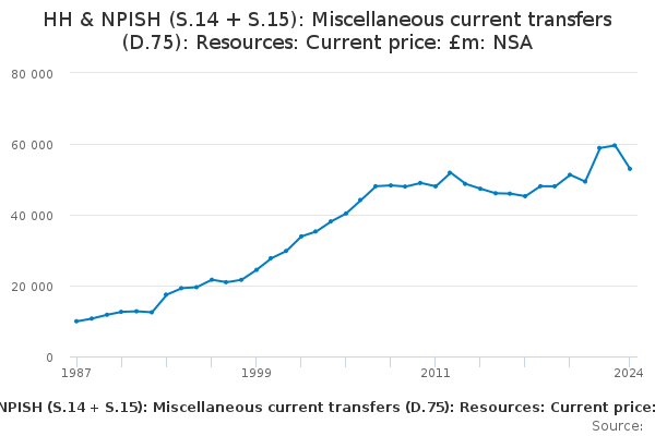 Download this time seriesHH & NPISH (S.14 + S.15): Miscellaneous current transfers (D.75): Resources: Current price: £m: NSA