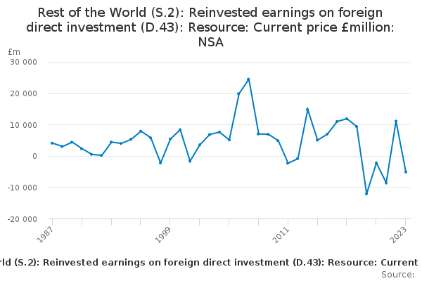 Download this time seriesRest of the World (S.2): Reinvested earnings on foreign direct investment (D.43): Resource: Current price £million: NSA