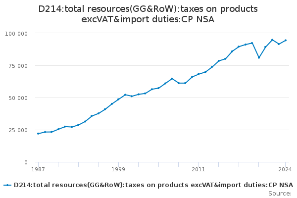 Download this time seriesD214:total resources(GG&RoW):taxes on products excVAT&import duties:CP NSA
