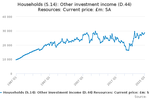 Download this time seriesHouseholds (S.14): Other investment income (D.44) Resources: Current price: £m: SA