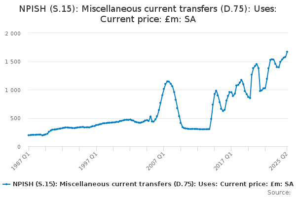 Download this time seriesNPISH (S.15): Miscellaneous current transfers (D.75): Uses: Current price: £m: SA