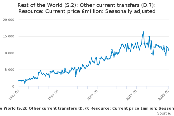 Download this time seriesRest of the World (S.2): Other current transfers (D.7): Resource: Current price £million: Seasonally adjusted