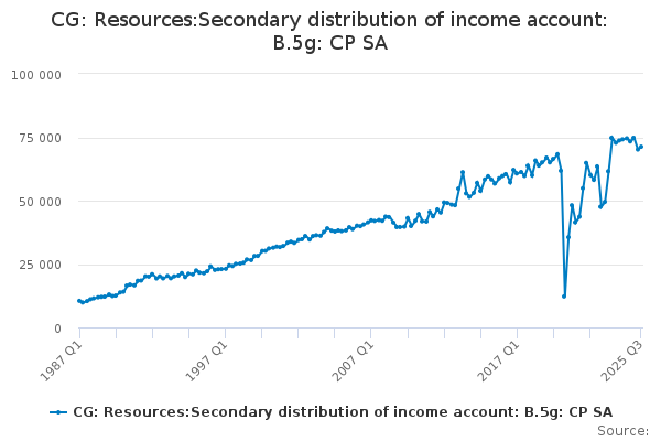 Download this time seriesCG: Resources:Secondary distribution of income account: B.5g: CP SA