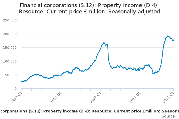 Download this time seriesFinancial corporations (S.12): Property income (D.4): Resource: Current price £million: Seasonally adjusted