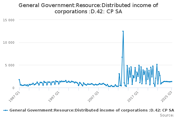 Download this time seriesGeneral Government:Resource:Distributed income of corporations :D.42: CP SA