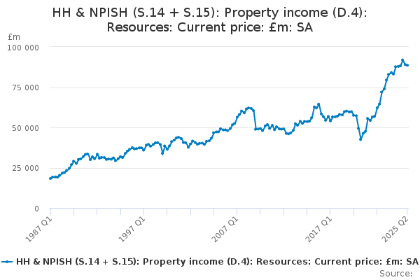 Download this time seriesHH & NPISH (S.14 + S.15): Property income (D.4): Resources: Current price: £m: SA