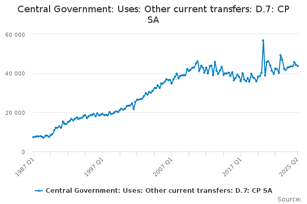 Download this time seriesCentral Government: Uses: Other current transfers: D.7: CP SA