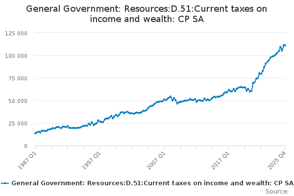 Download this time seriesGeneral Government: Resources:D.51:Current taxes on income and wealth: CP SA