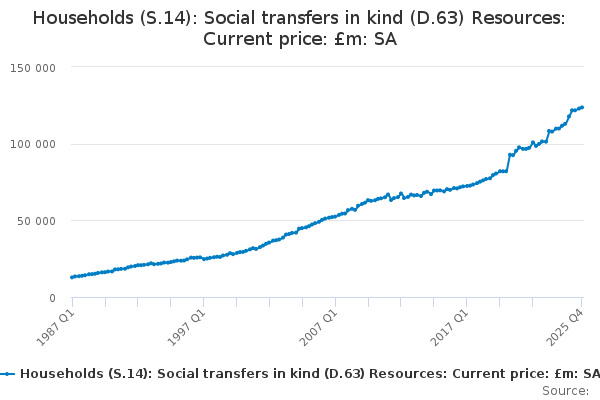 Download this time seriesHouseholds (S.14): Social transfers in kind (D.63) Resources: Current price: £m: SA