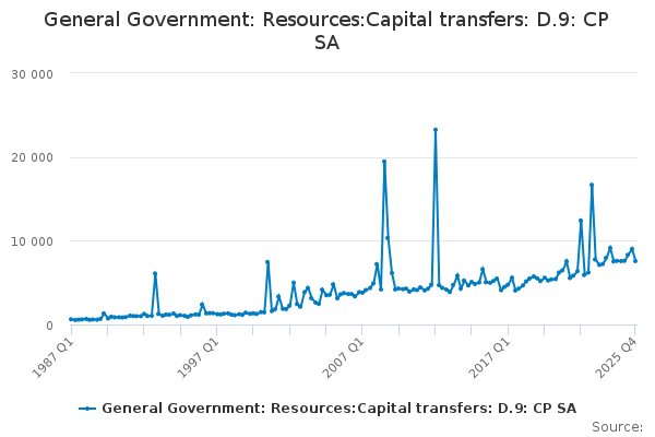 Download this time seriesGeneral Government: Resources:Capital transfers: D.9: CP SA