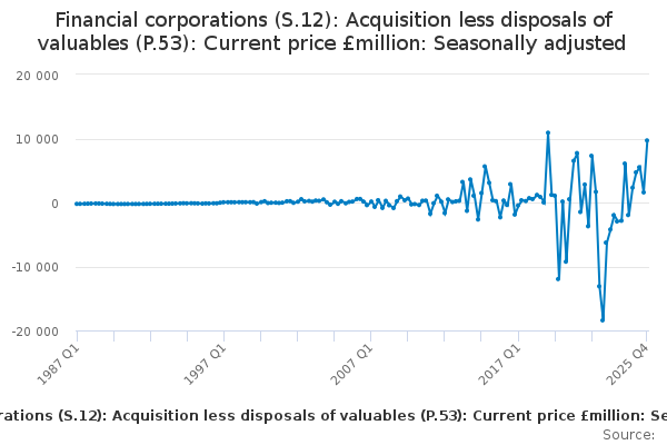 Download this time seriesFinancial corporations (S.12): Acquisition less disposals of valuables (P.53): Current price £million: Seasonally adjusted