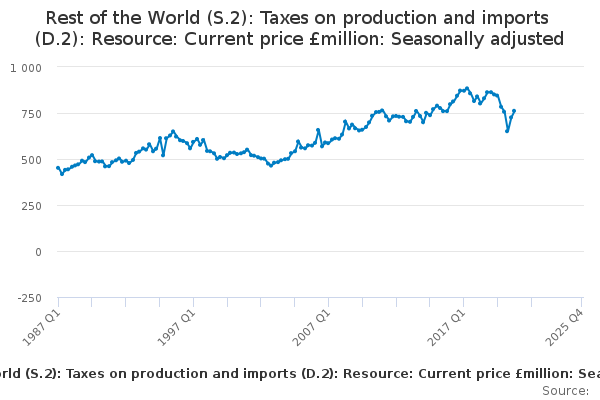 Download this time seriesRest of the World (S.2): Taxes on production and imports (D.2): Resource: Current price £million: Seasonally adjusted