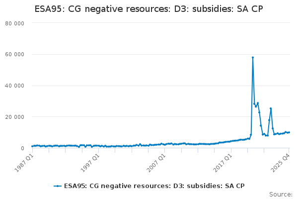 Download this time seriesESA95: CG negative resources: D3: subsidies: SA CP