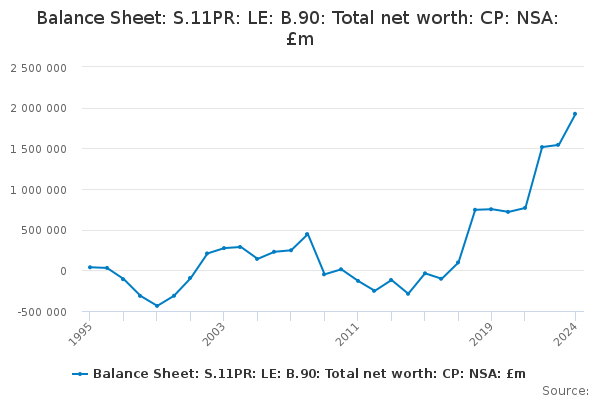 Download this time seriesBalance Sheet: S.11PR: LE: B.90: Total net worth: CP: NSA: £m