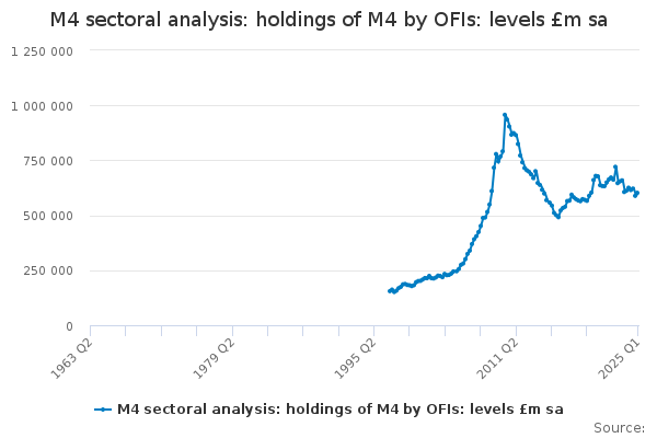 Download this time seriesM4 sectoral analysis: holdings of M4 by OFIs: levels £m sa