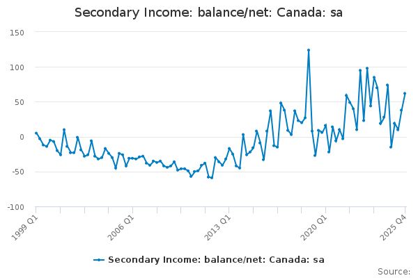 Download this time seriesSecondary Income: balance/net: Canada: sa