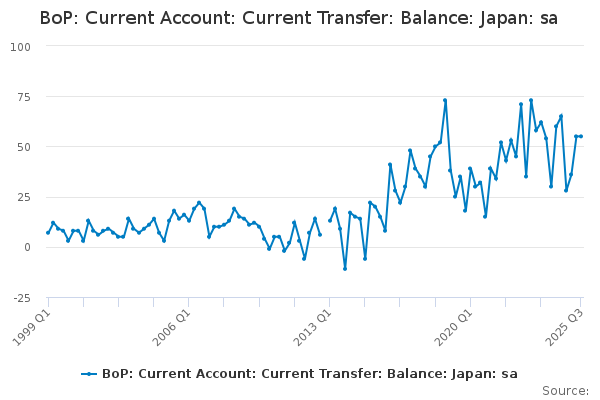 Download this time seriesBoP: Current Account: Current Transfer: Balance: Japan: sa