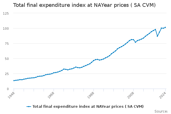 Download this time seriesTotal final expenditure index at NAYear prices ( SA CVM)