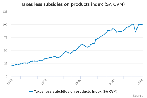 Download this time seriesTaxes less subsidies on products index (SA CVM)