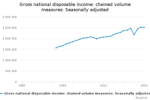 Download this time seriesGross national disposable income: chained volume measures: Seasonally adjusted
