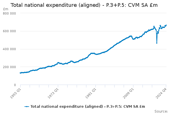 Download this time seriesTotal national expenditure (aligned) - P.3+P.5: CVM SA £m