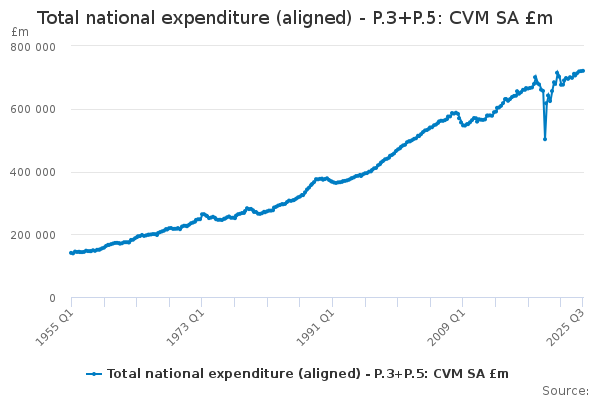 Download this time seriesTotal national expenditure (aligned) - P.3+P.5: CVM SA £m