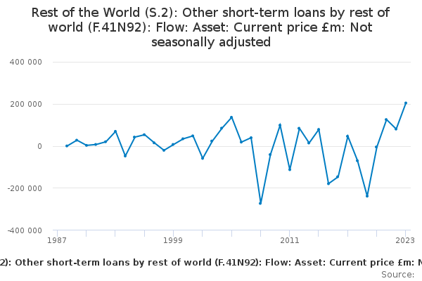 Download this time seriesRest of the World (S.2): Other short-term loans by rest of world (F.41N92): Flow: Asset: Current price £m: Not seasonally adjusted