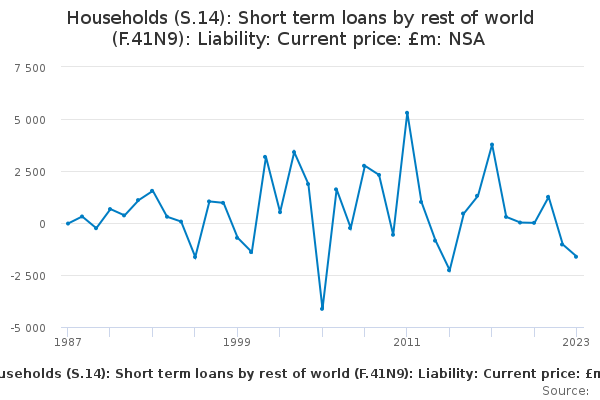 Download this time seriesHouseholds (S.14): Short term loans by rest of world (F.41N9): Liability: Current price: £m: NSA